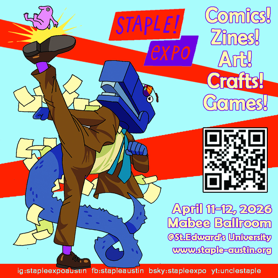 …as well as STAPLE! Expo on Sunday at the Mabee Ballroom at St. Edward’s University. I’ll be at table 39 with the ATX Comix Meetup Table crew!